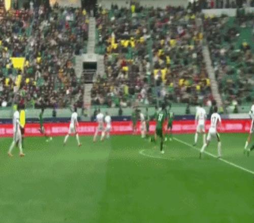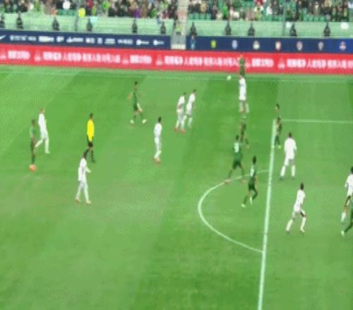 第6分钟,张玉宁头球摆渡,奥马尔松解围失误,法比奥转身扫射破门,但主裁判判罚越位在先进球无效。